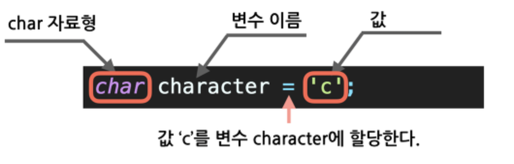 char형: Character의 약자로 문자 1개를 저장하는 '자료형'